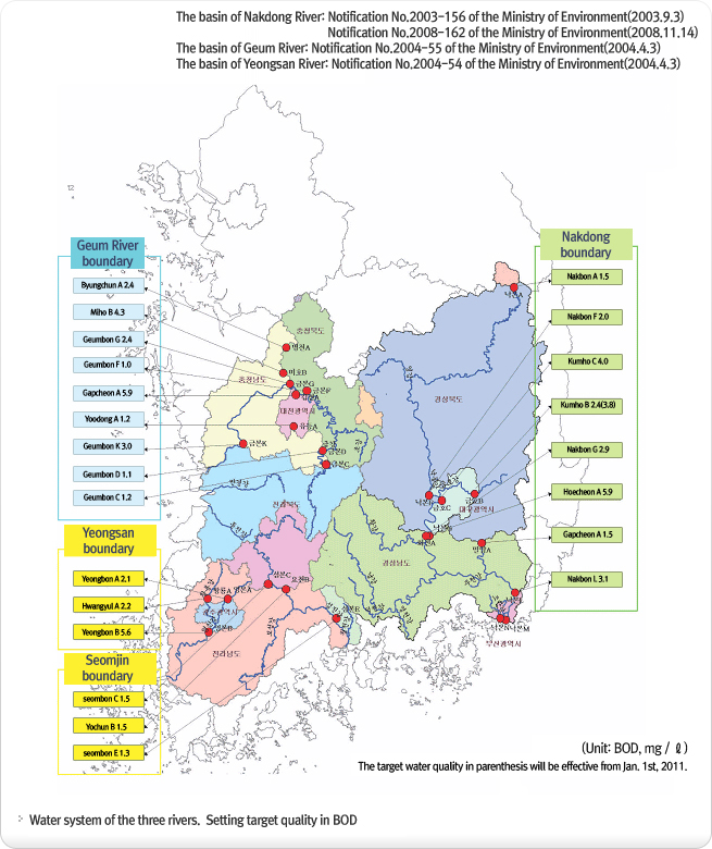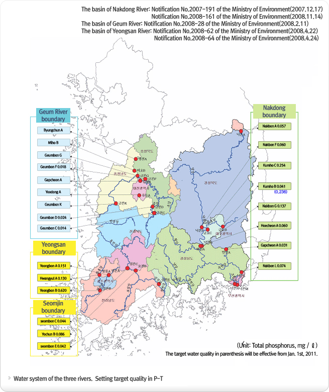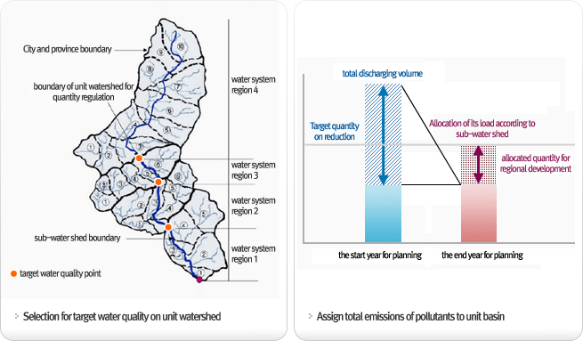 - Quantity regulation system of water-quality pollutants has their main target water qualities according to its water system and prohibits the quantity of pollutants discharged in corresponding water system under the discharge allowance