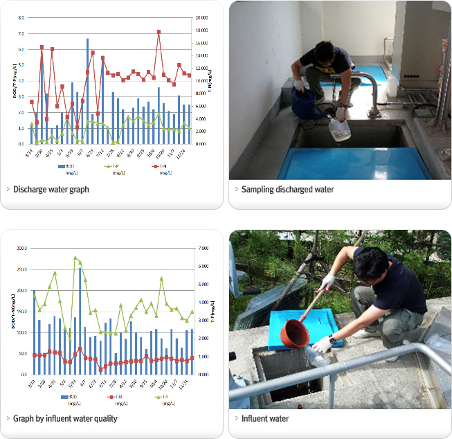 Periodically inspect the water quality and flow rate of target facilities such as major point pollutant discharging facility, control Facilities for Non-point Source and etc according to the Article 11 of the law on water management of the Geum River water system, resident support and etc and Article 4 of revised regulation on implementation evaluation standard of Quantity regulation system of water-quality pollutants(Notification of No.2010-154 of the Ministry of Environment, Nov. 11, 2010) to manage target water quality within unit watershed, analyze the changes in water quality and finally reflect its outcome to implementation evaluation of Quantity regulation system of water-quality pollutants